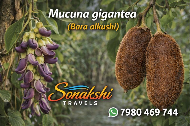 The genus Mucuna comprises several climbing species distributed across tropical regions, many of which are known for their medicinal and ecological importance. Mucuna gigantea is distinguished by its exceptionally large growth form, woody stems, and thick, bristly pods.