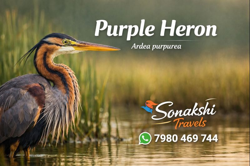 Within the Sundarbans, the Purple Heron is typically found in freshwater marshes, reed-lined channels, and less disturbed mangrove edges. Areas with dense aquatic vegetation and low human activity provide optimal conditions for feeding and nesting.